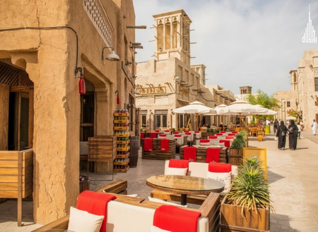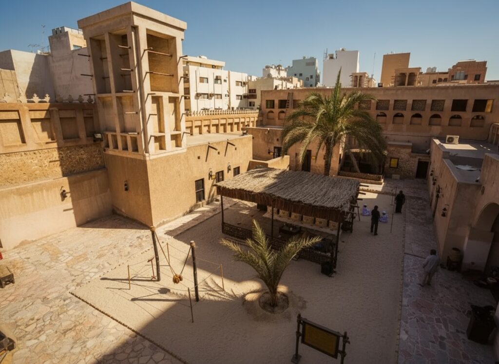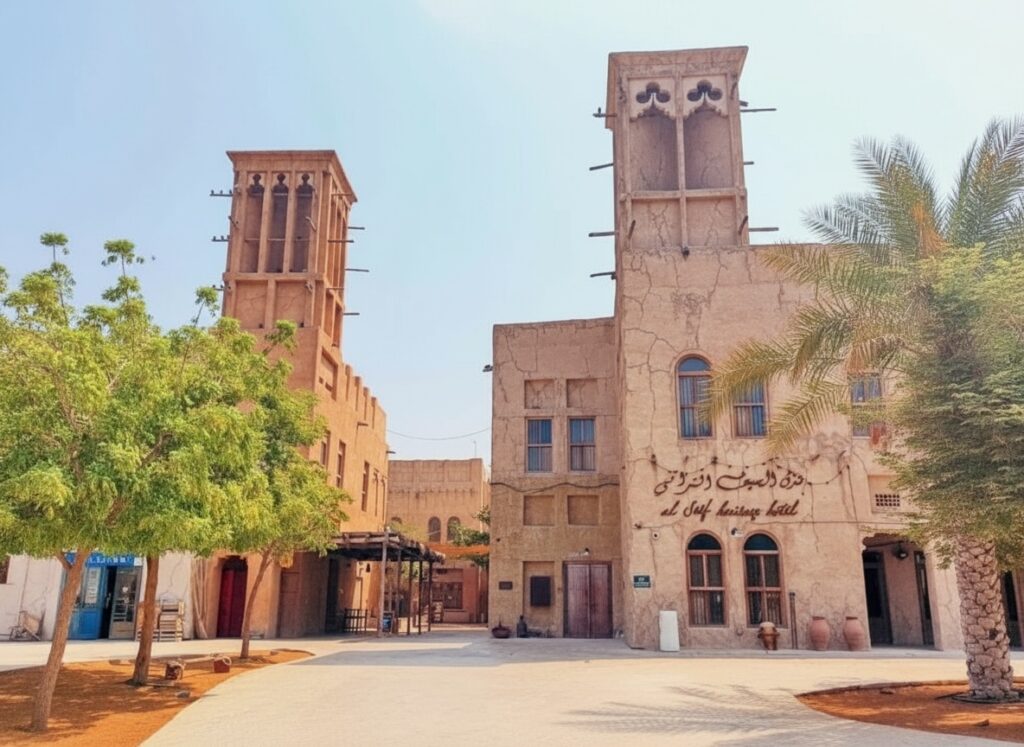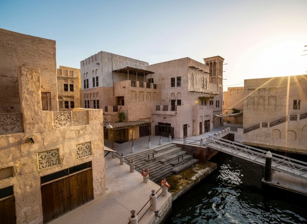 It showcases traditional Emirati architecture alongside modern shops, cafés, and hotels.