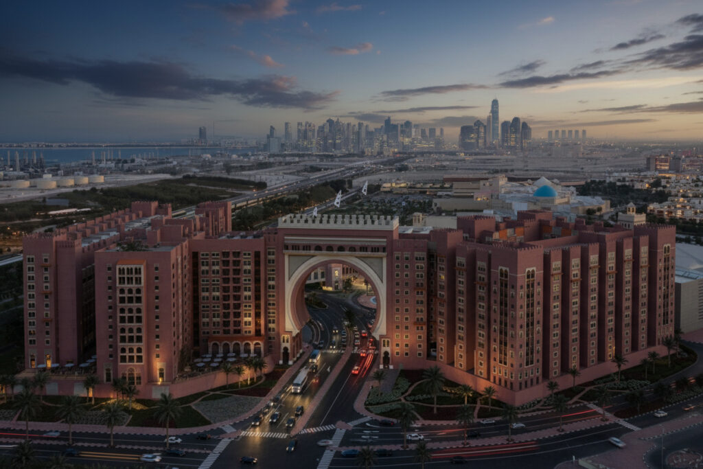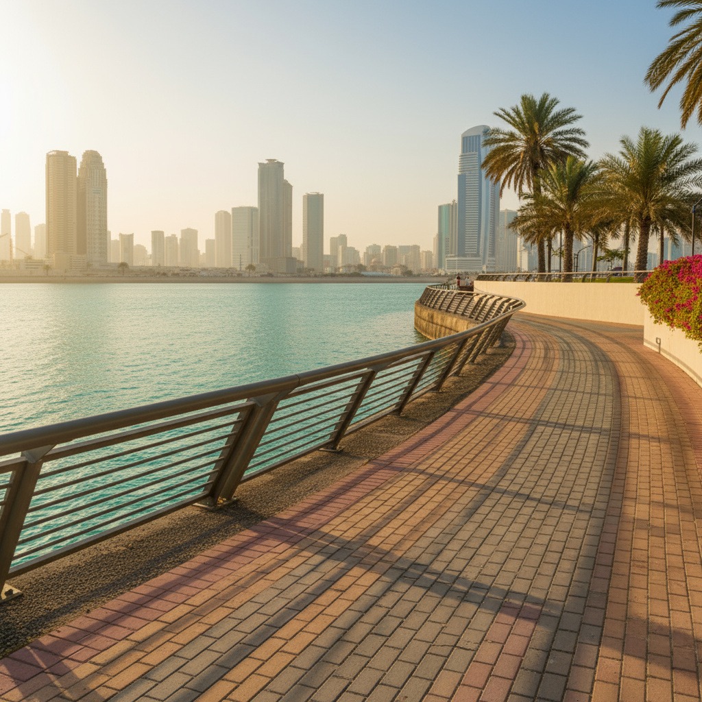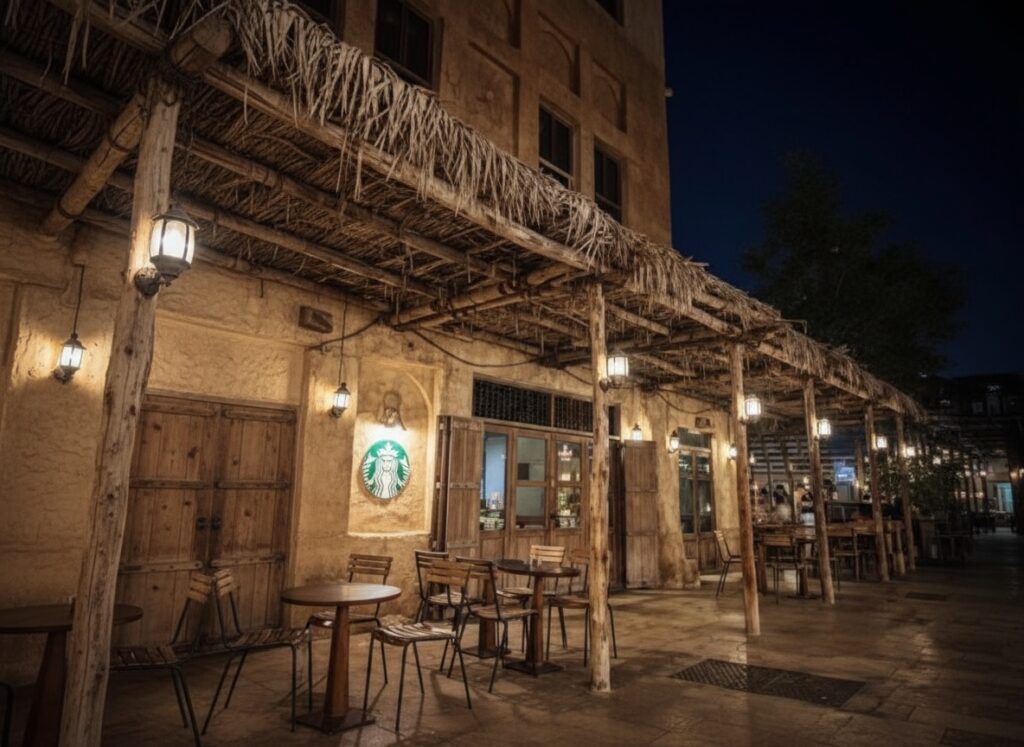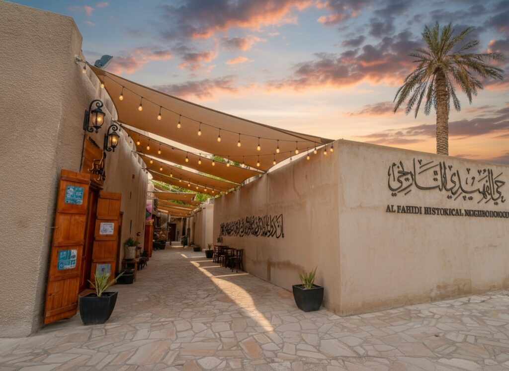 It showcases traditional Emirati architecture alongside modern shops, cafés, and hotels.