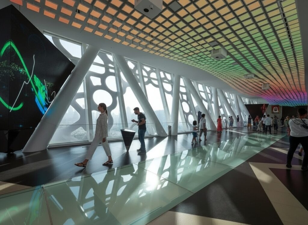 Exhibits explore AI, space exploration, robotics, and sustainability.