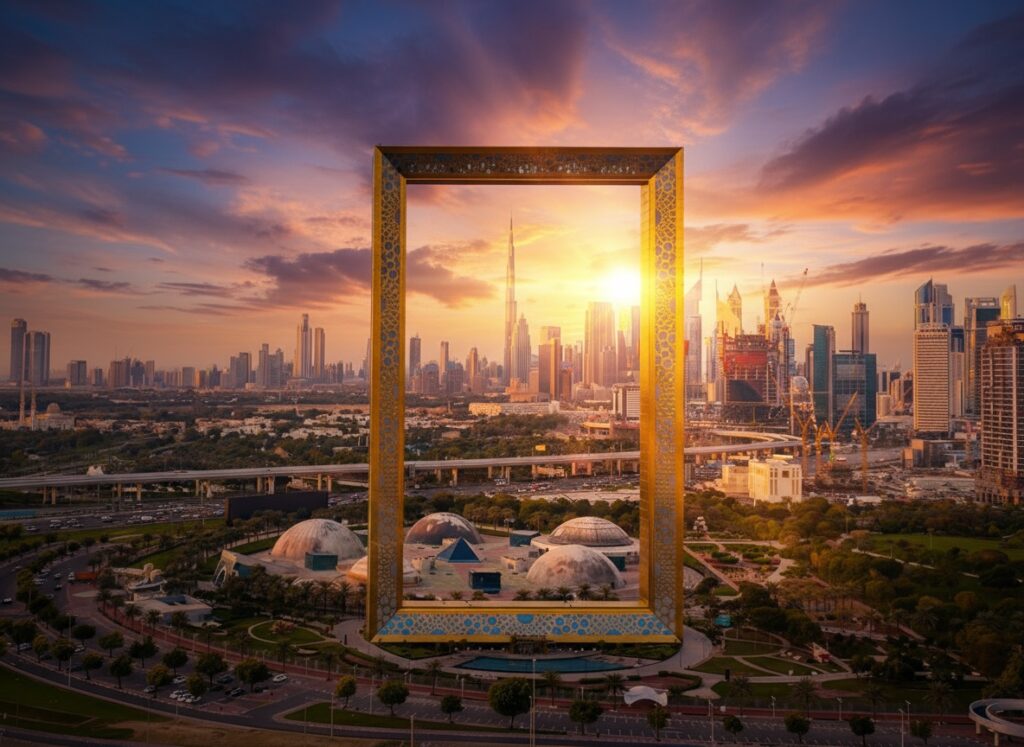 The Dubai Frame symbolizes the connection between the city’s past, present, and future.