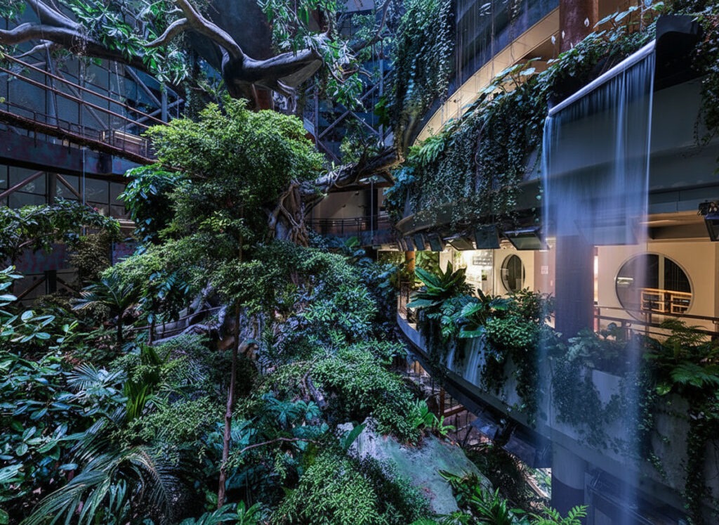 It was opened in 2016 and recreates a four-story bio-dome ecosystem.