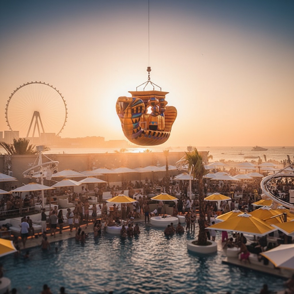 Palm West Beach is a vibrant beachfront destination located on Palm Jumeirah, Dubai. It features restaurants, cafes, and leisure spots, attracting tourists and residents. Visitors can also enjoy watersports and sunset views.