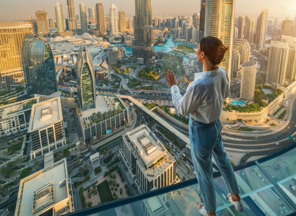 The attraction includes a glass-floored sky deck and museum showcasing Dubai’s history and future plans.